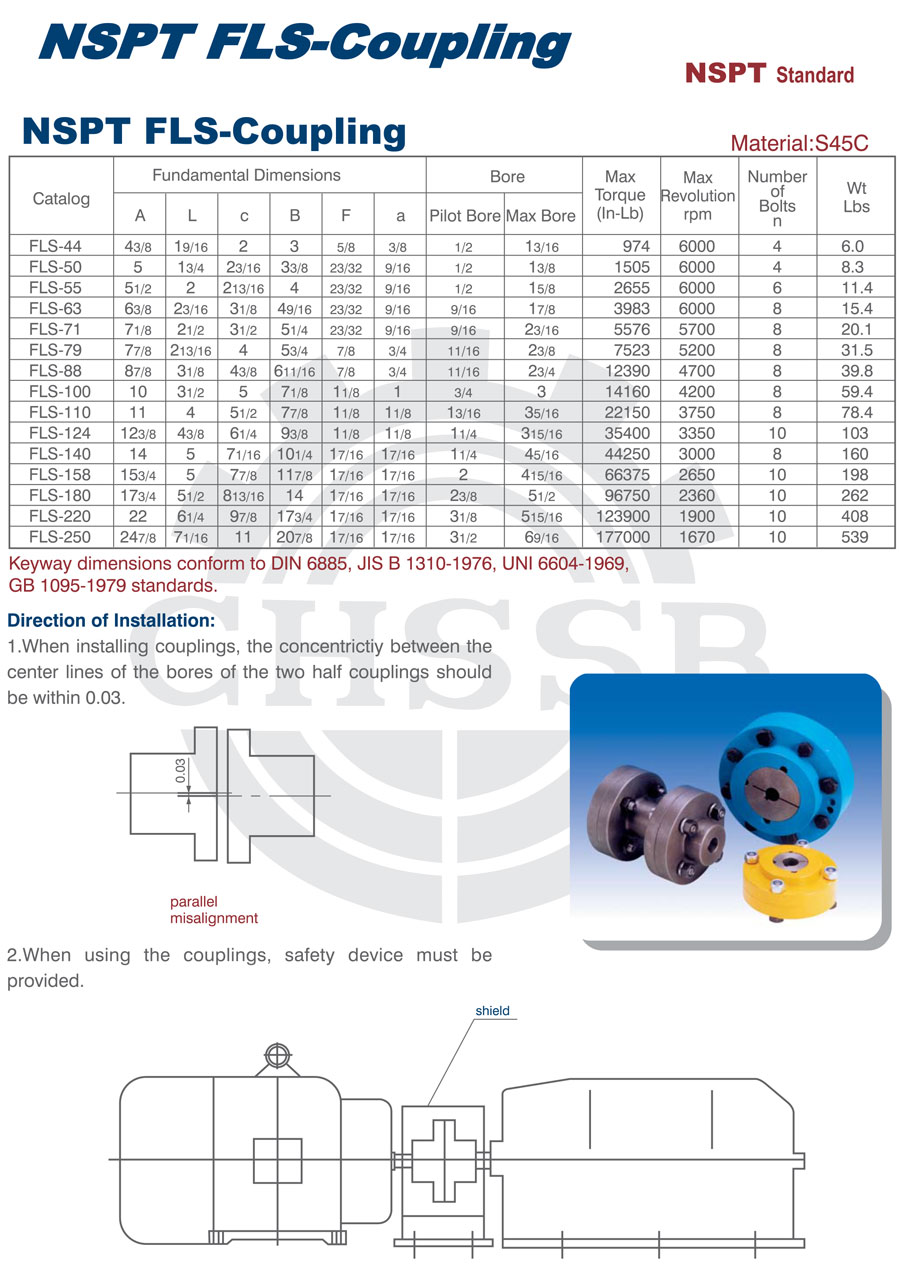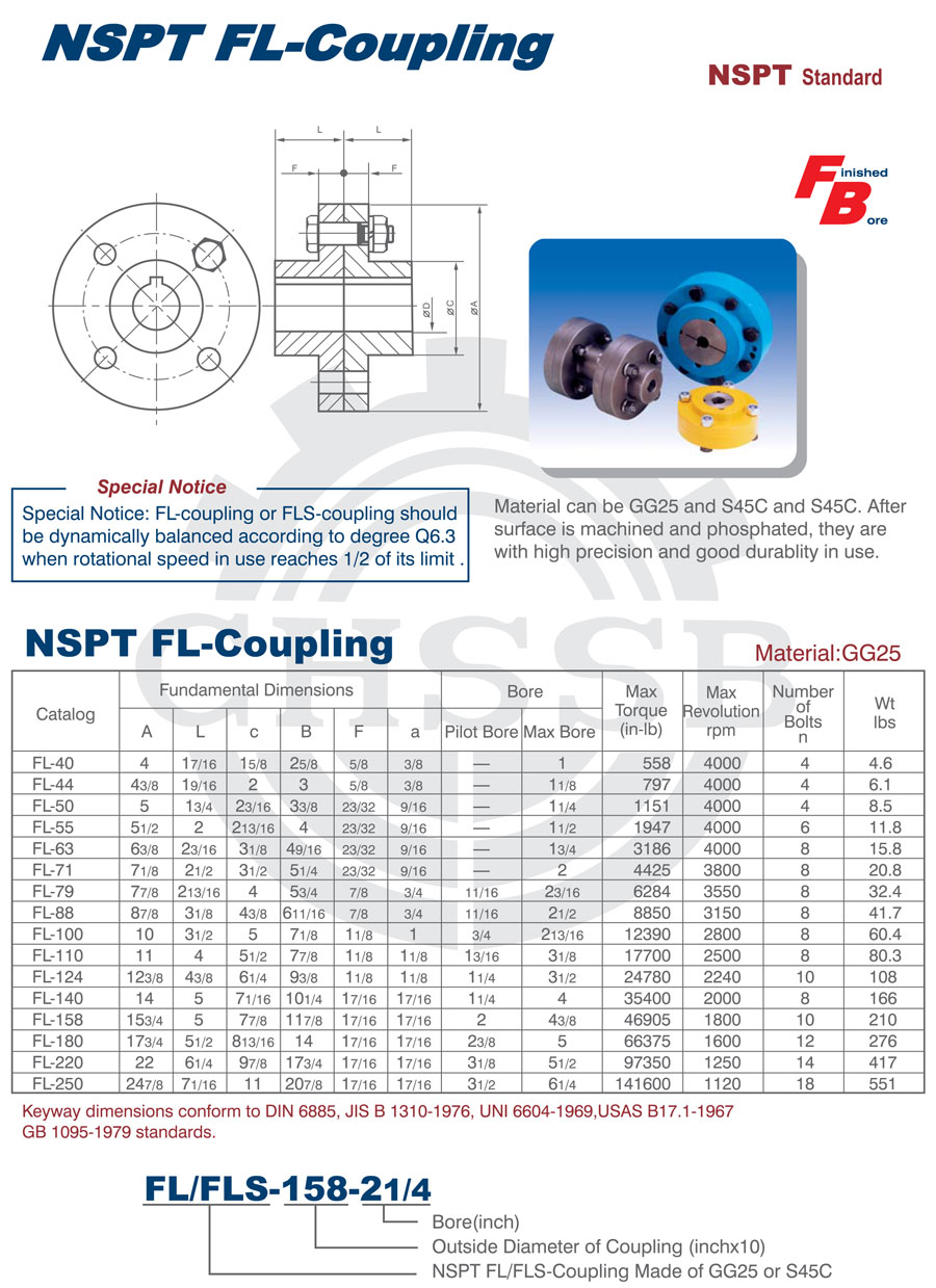 產(chǎn)品范圍: 美標:(FL/FLS) 歐標:(FL/FLS) 英制尺寸產(chǎn)品(適用于美標市場) 公制尺寸產(chǎn)品(適用于歐標市場) FL型聯(lián)軸器 FLS型聯(lián)軸器